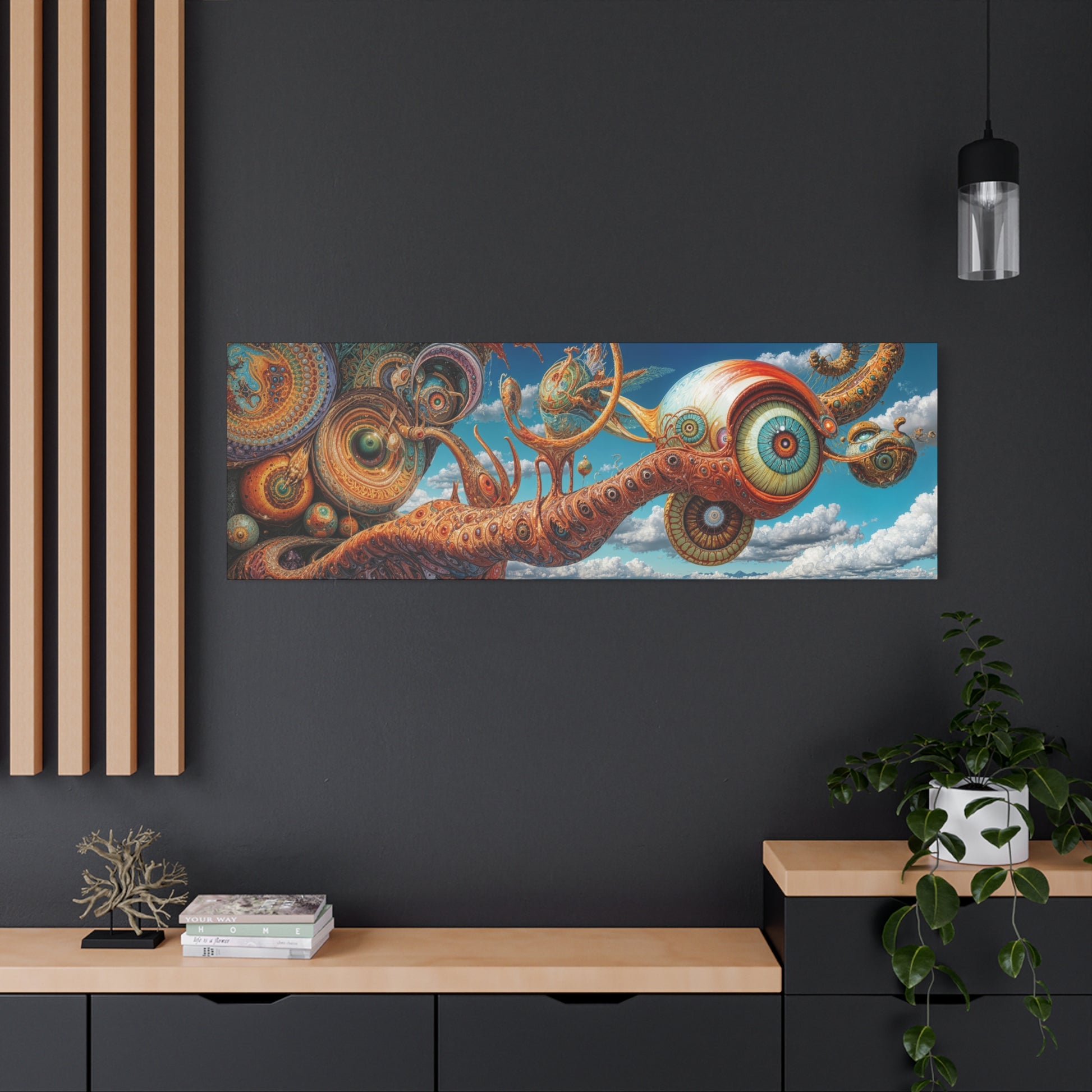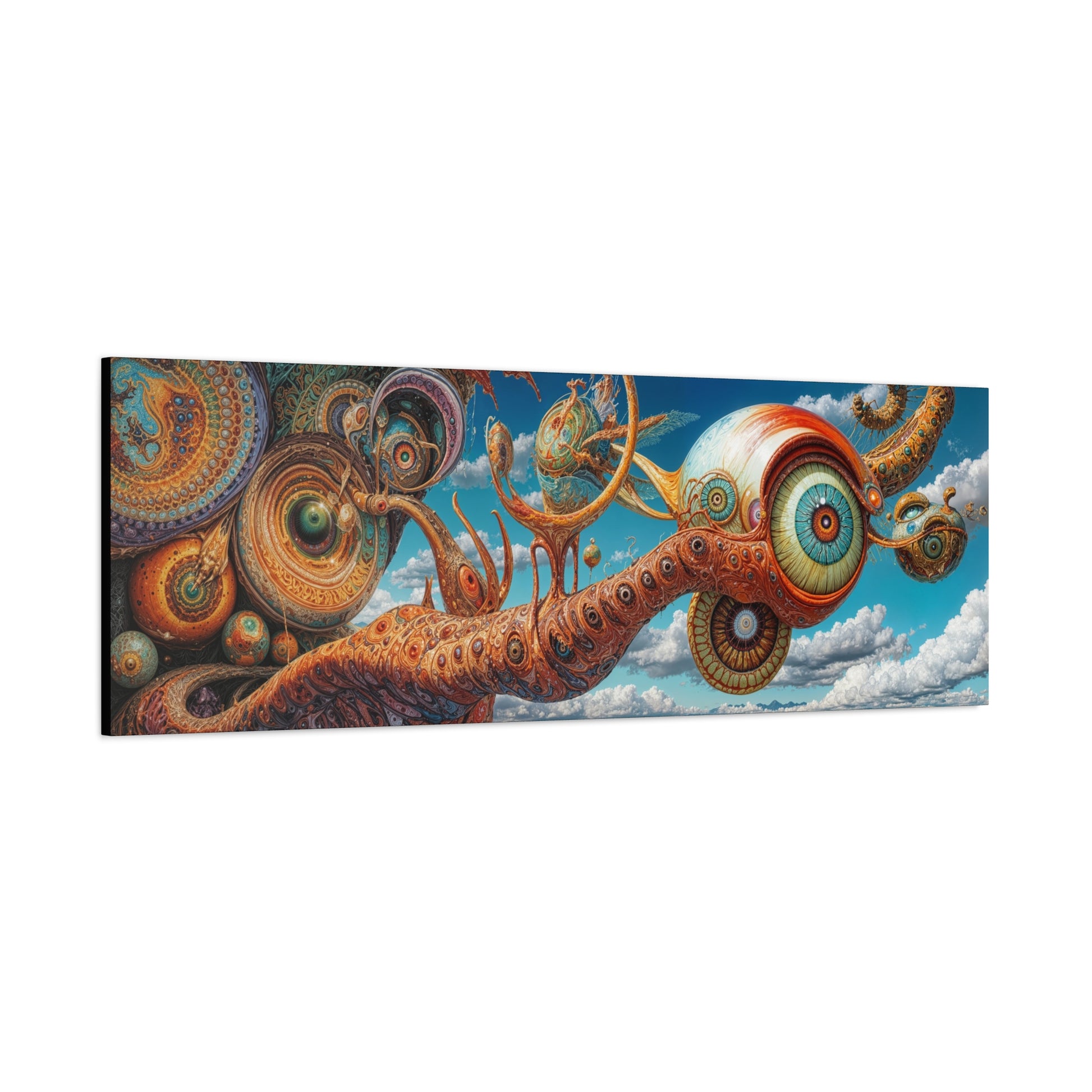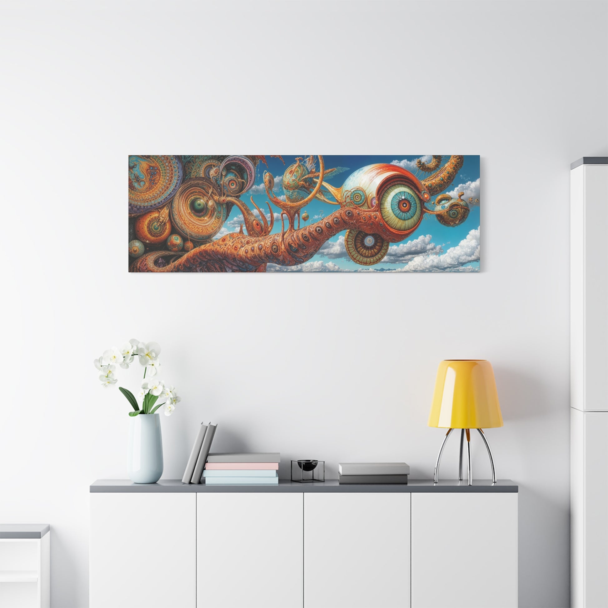 Step into the silent chants of light and shadow with Liminal Aperture Canticle, where molten oranges and deep blues entwine in a visual hymn. Ribbons of color weave through soaring apertures, each swirl and spiral inviting you into a meditative dance of balance and movement. This canvas print transforms your wall into a sanctuary of soundless melody, awakening your spirit to the hidden harmonies of the unseen.