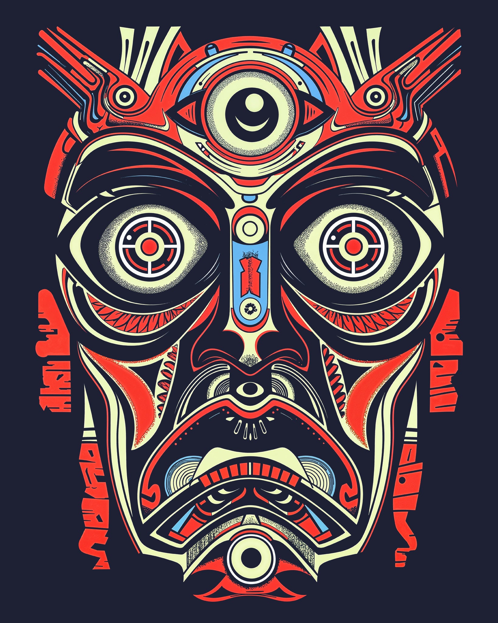 Integrate into a tapestry of vibrant reds and tranquil blues, where the ancient eye gazes forward as a sentinel of voyages untold. Commune with the intricate patterns and bold lines as they amplify the whispers of forgotten paths. Slipping into this jersey tee, you synchronize with symbols of exploration, becoming both traveler and guide in the dance of creation and discovery.