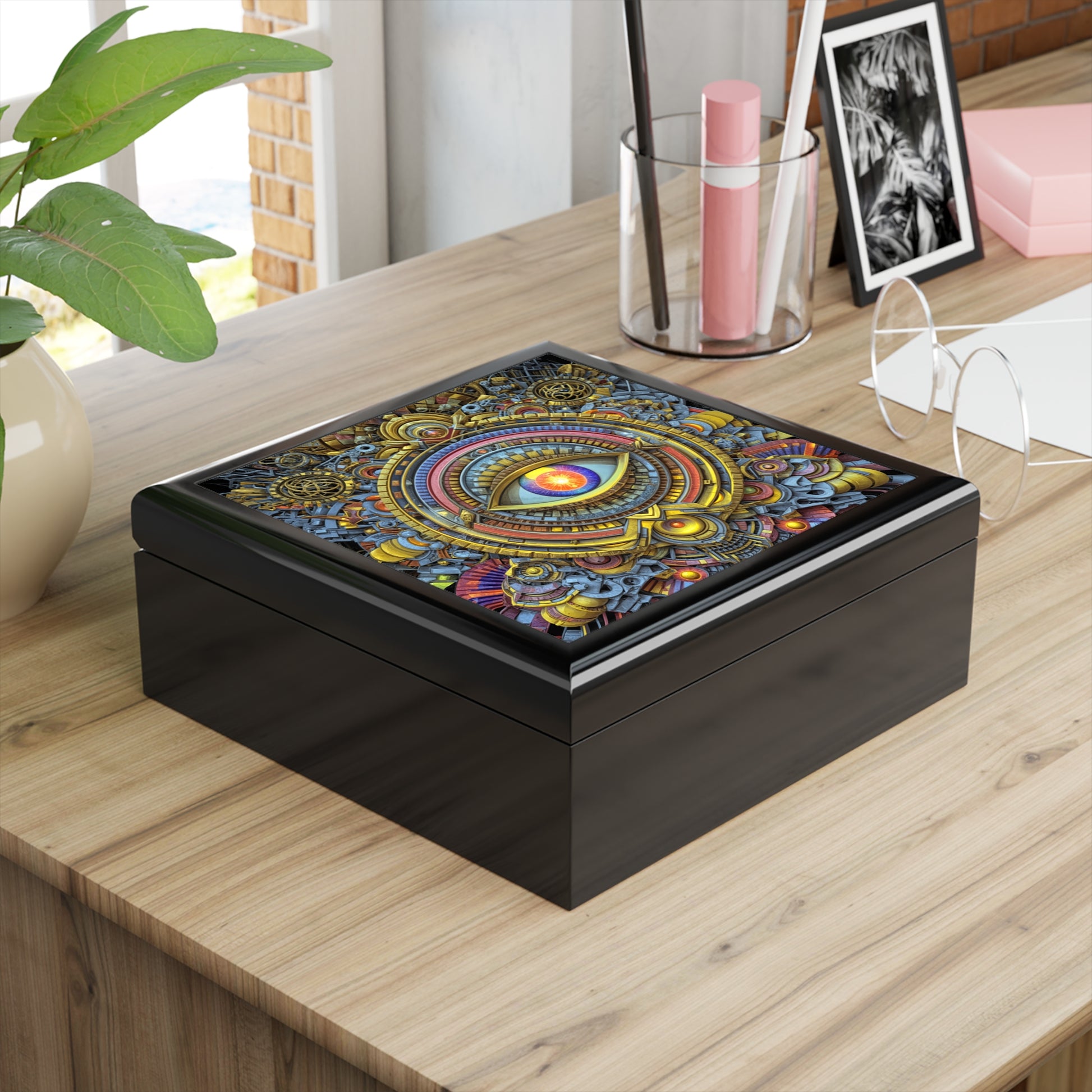 • 6" x 6" (15cm x 15cm) decorated glossy sublimation ceramic tile fitted on top of lid