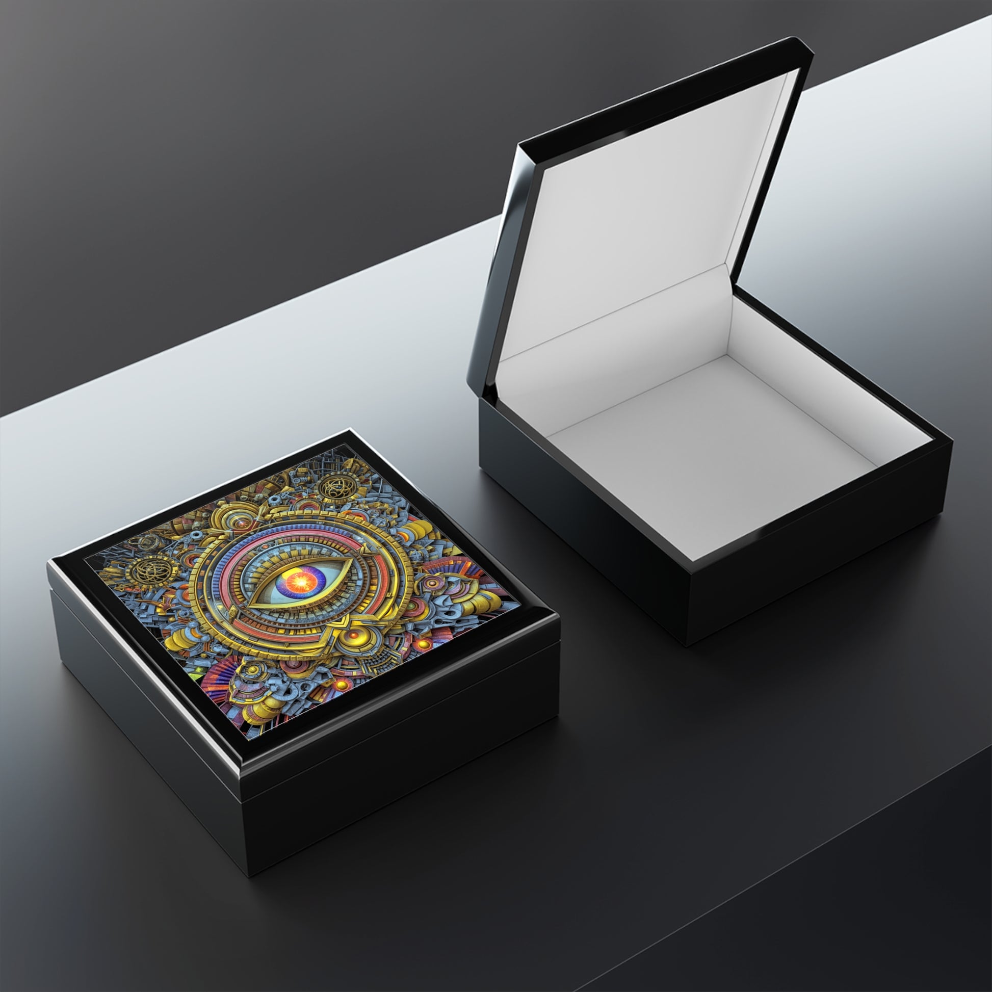 Harnessing the kaleidoscope of hues and intricate geometry, this chest pulsates with an ancient pulse, weaving vibrant echoes of gold, crimson, and azure. It orchestrates a symphony of dynamic vibrations, each layer an anthem of celestial precision, radiating an aura of awakened insight. As you stand before it, feel the whisper of timeless knowledge resonating through every metallic thread, inviting you to unlock the mysteries it guards.