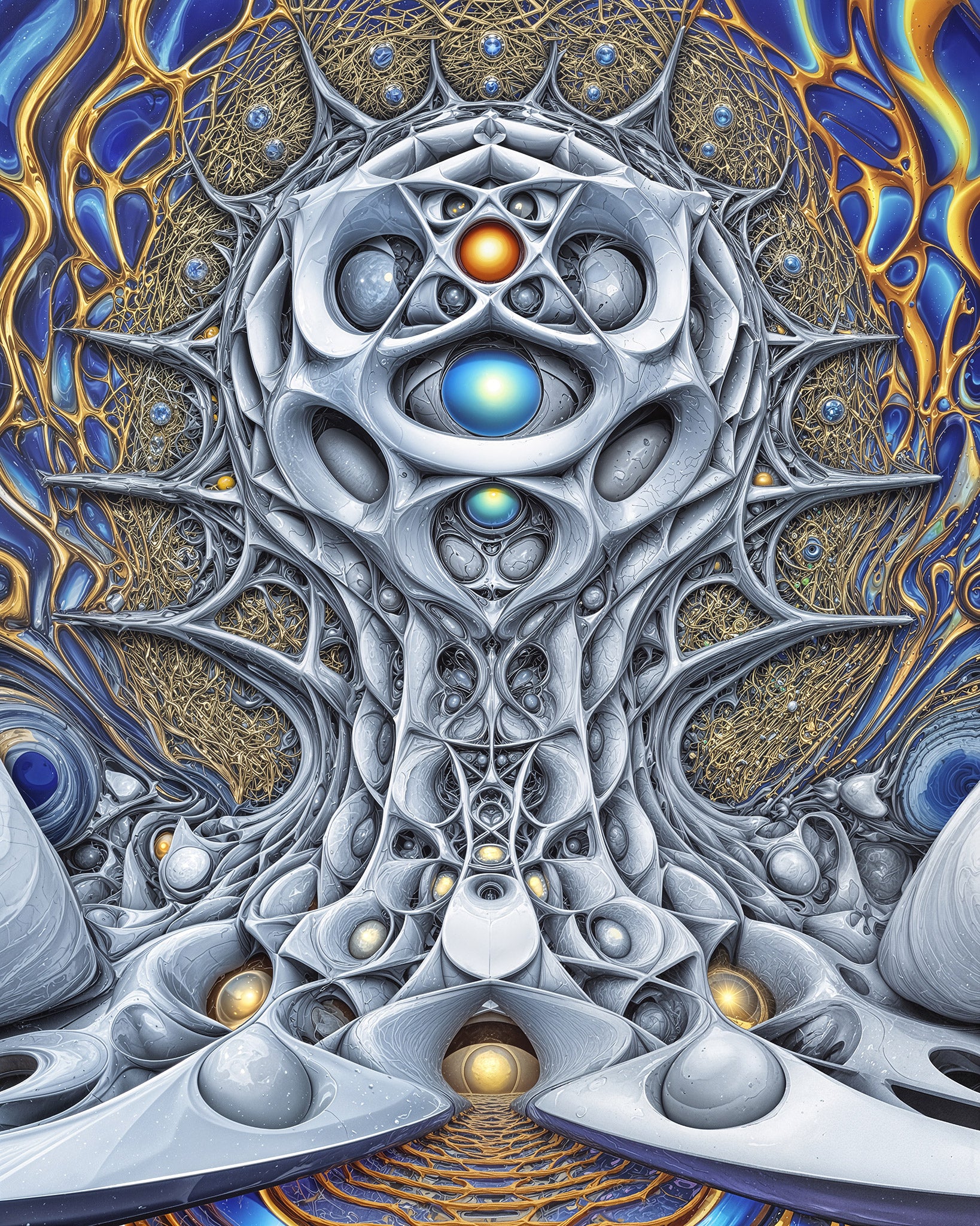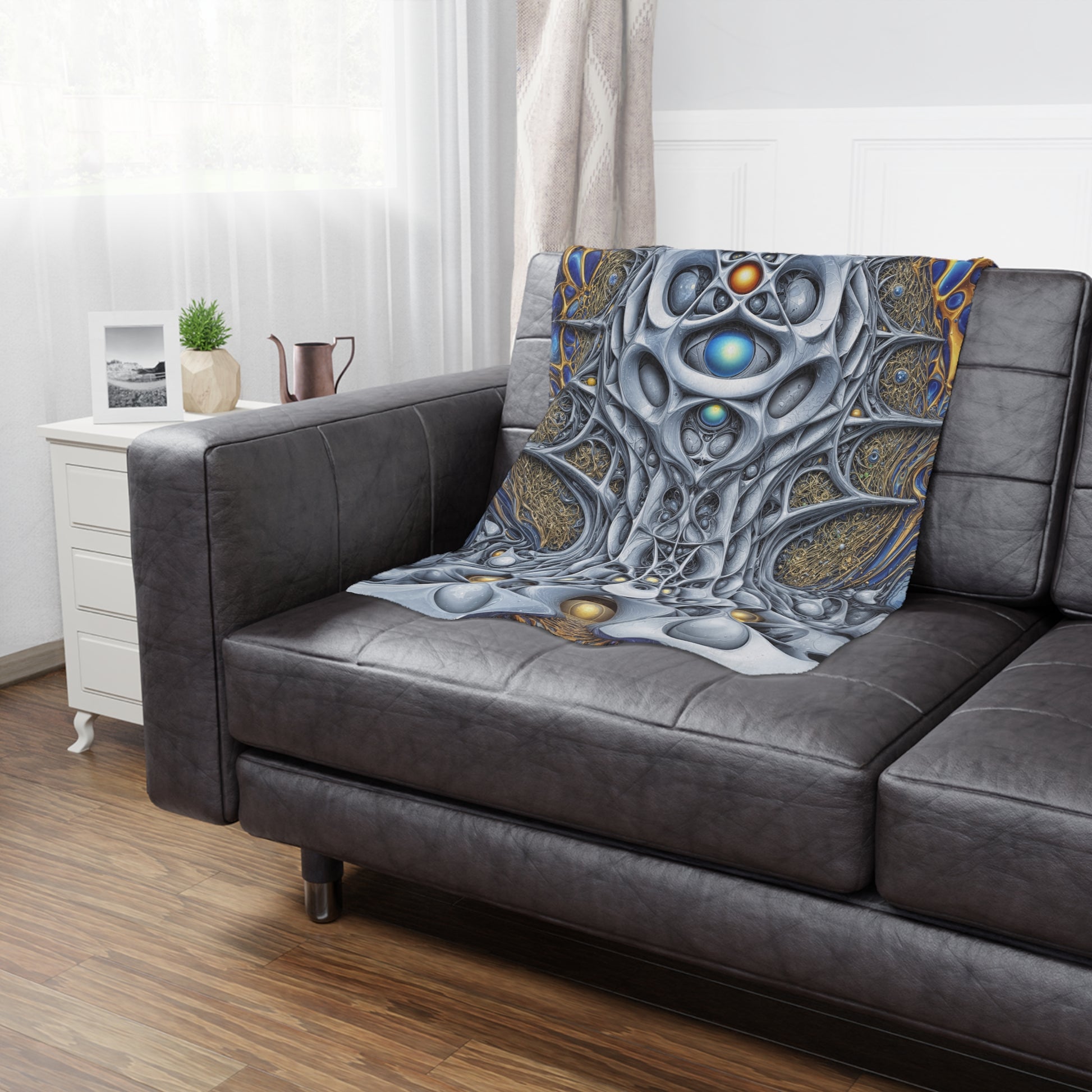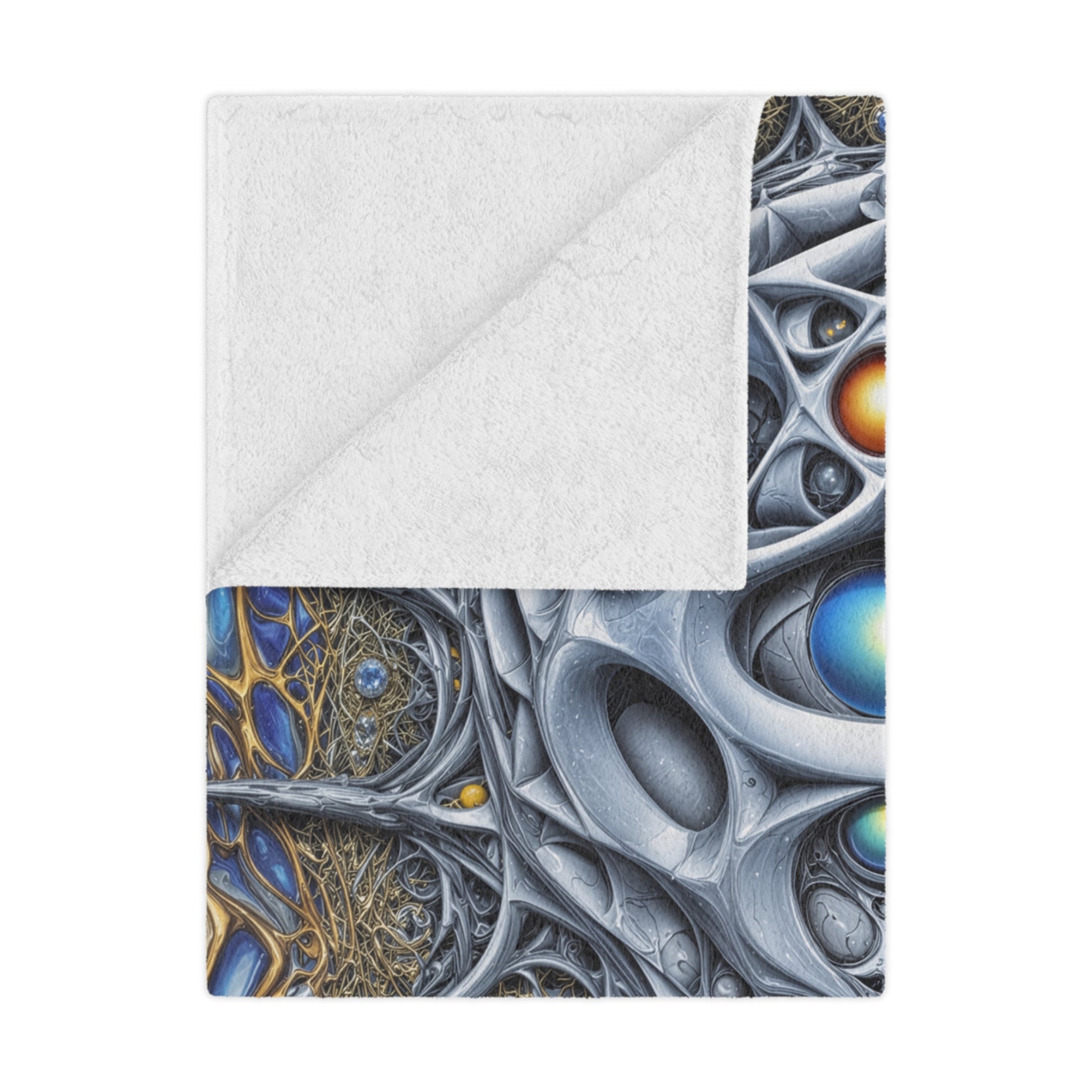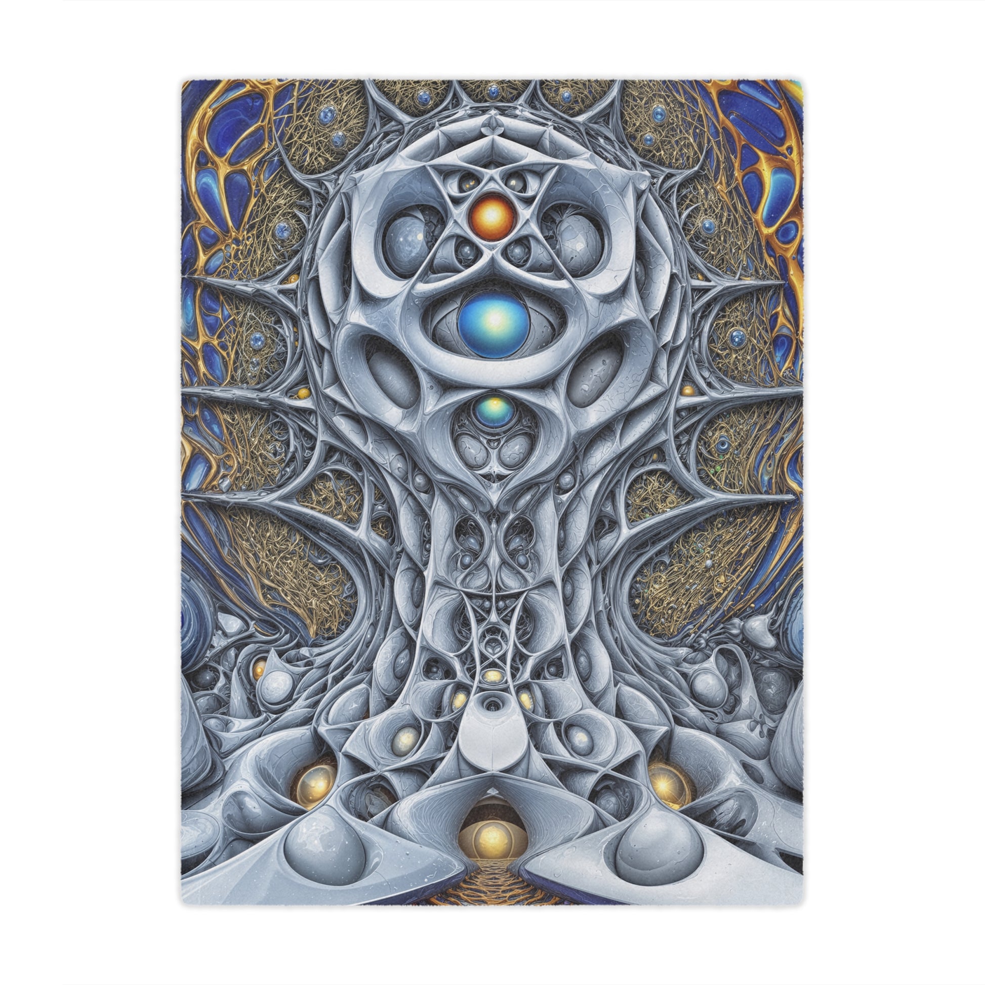 Step into the resonance of hidden architecture with this Minky blanket. Pillar of the Radiant Veil embodies the fusion of light and form, where tendrils of azure and gold weave a sanctuary of dream and ascent. Its soft embrace guides you through uncharted realms, wrapping your spirit in the warmth of radiant geometry.
